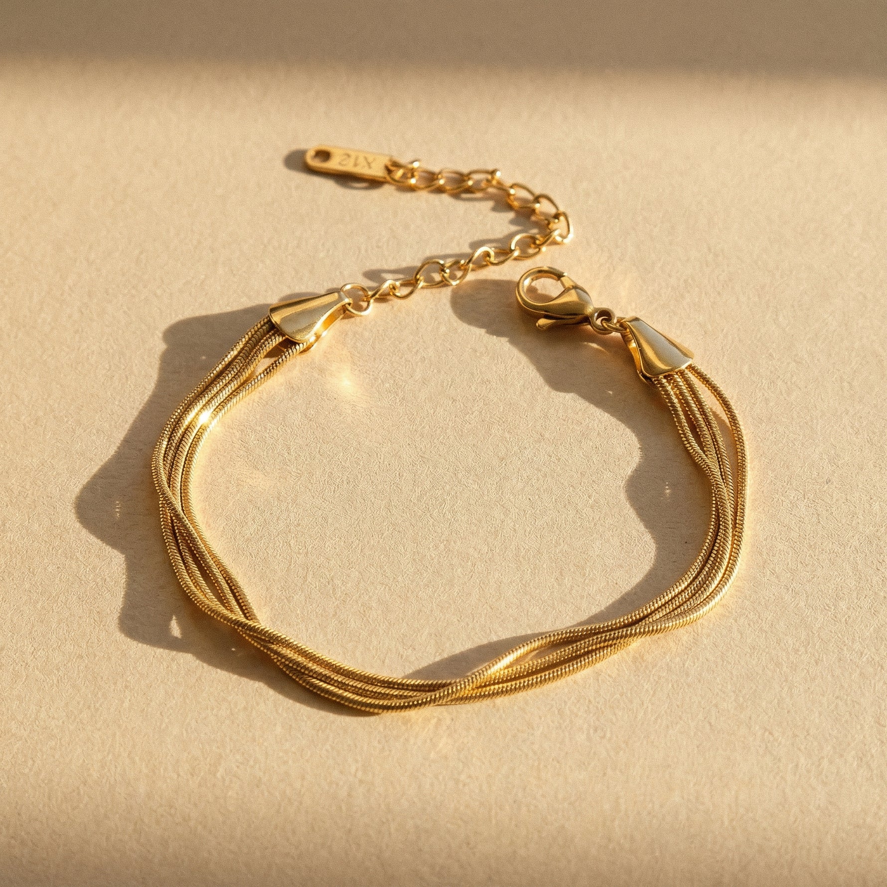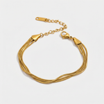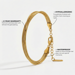 Crafted from premium stainless steel with high quality gold plating, this bracelet is designed for lasting durability while maintaining a radiant finish. Its elegant layered style makes it perfect to wear alone or paired with other bracelets.
