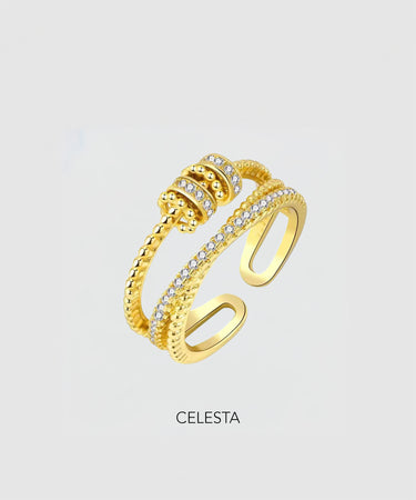 Born in France and loved worldwide, Orélina creates elegant rings designed to ease stress, support mindful moments, and elevate your everyday. This ten-piece collection blends function with fine design — each ring offering a unique, discreet way to soothe anxious habits without compromising your style.